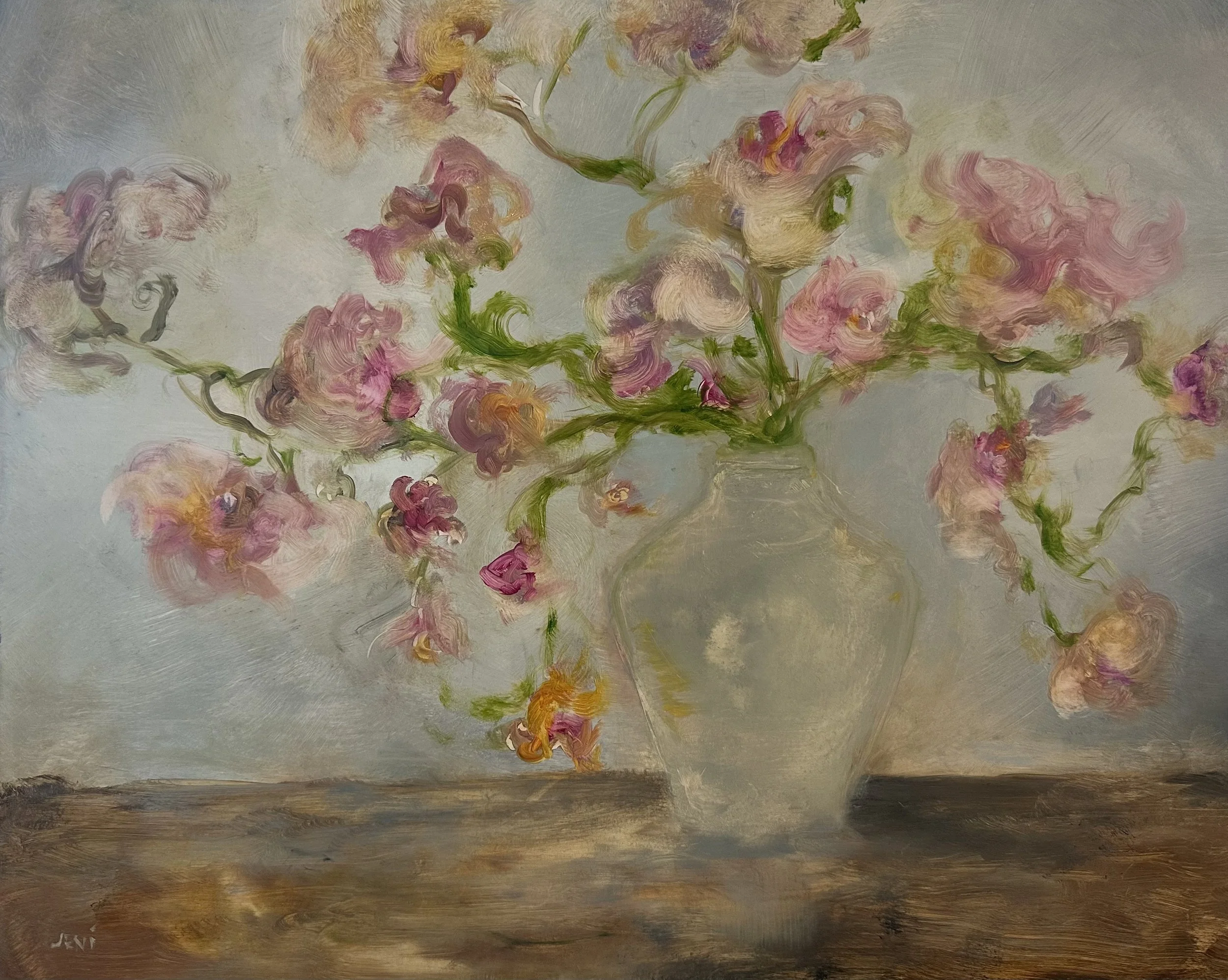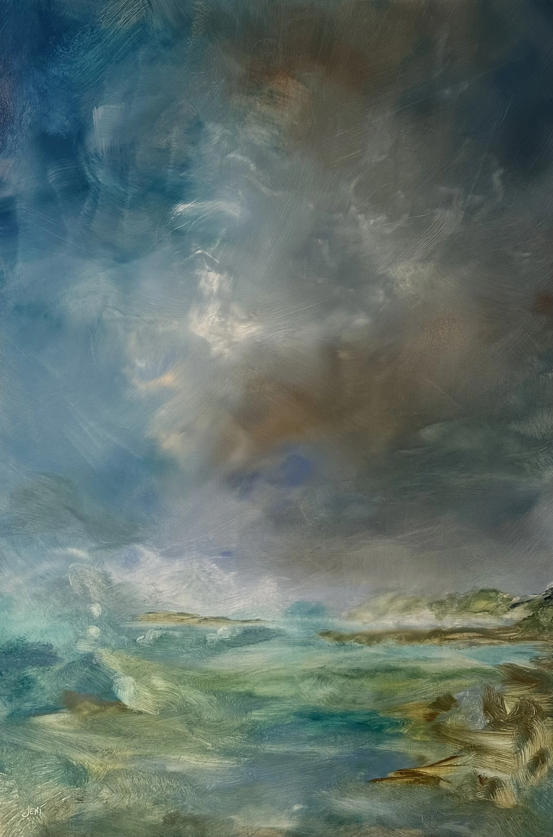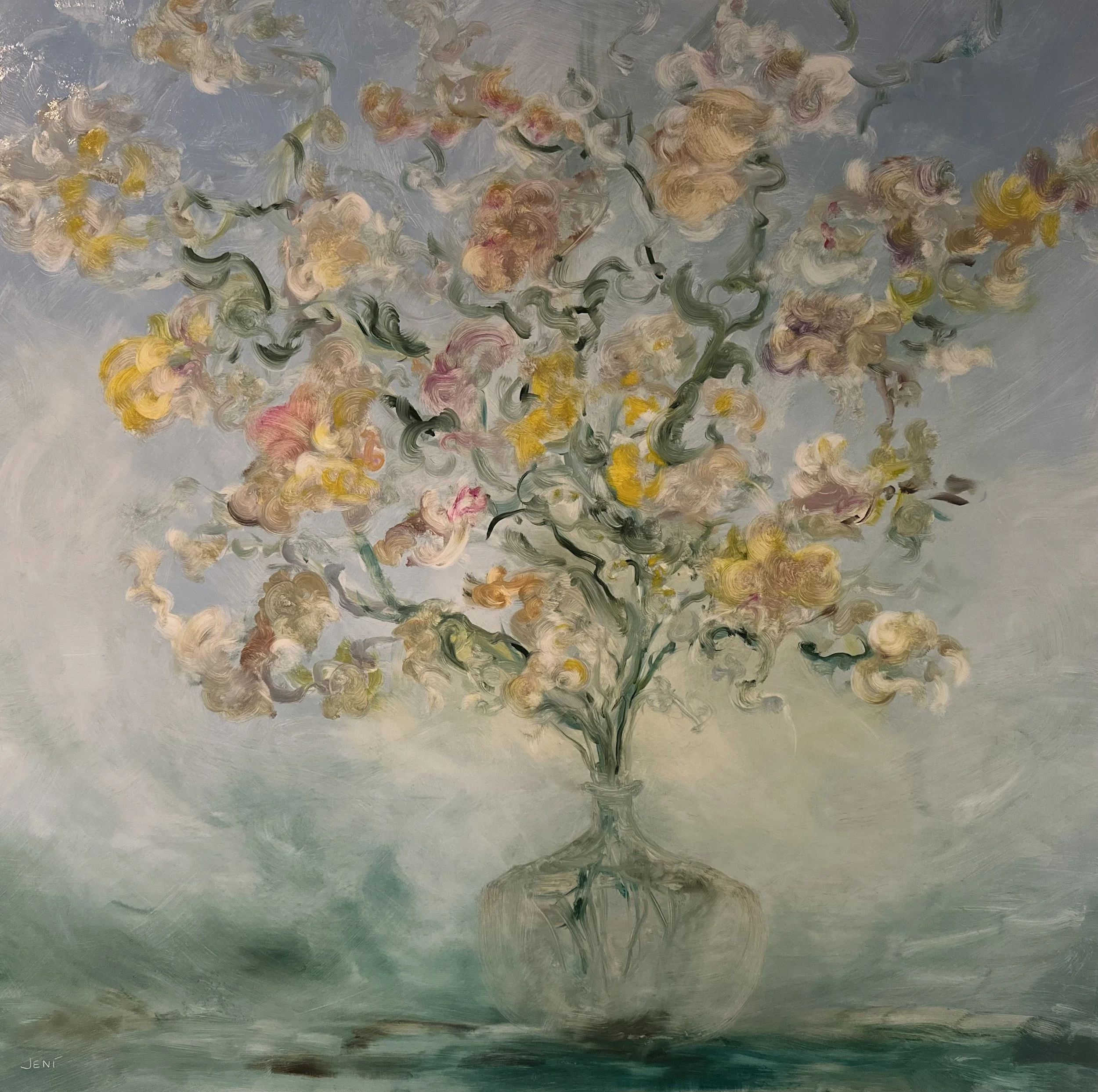 Jeni, a dynamic and innovative fine artist, possesses a passion for exploring and pushing the boundaries of creative expression, experimental processes, and the deepest aspects of the human experience. Jeni’s paintings merge elements of realism with abstract inner landscapes, skillfully uncovering the intricate complexities of our collective human existence. Through this approach, Jeni develops artwork that resonates profoundly on multiple levels, much like figures emerging and breaking the surface of conscious awareness. Evocative and groundbreaking, Jeni’s work employs broad, varied color palettes combined with a heightened emotional atmosphere, inviting viewers to delve deeply into the delicate and often hidden layers of consciousness. Immerse yourself fully in Jeni’s prismatic, spectral universe, where each painting and piece of fine art uniquely and originally reflects a commitment to innovation and artistic exploration. Jeni’s work is steadfastly devoted to creating new edges of what contemporary landscape, still life, and figurative art looks like.